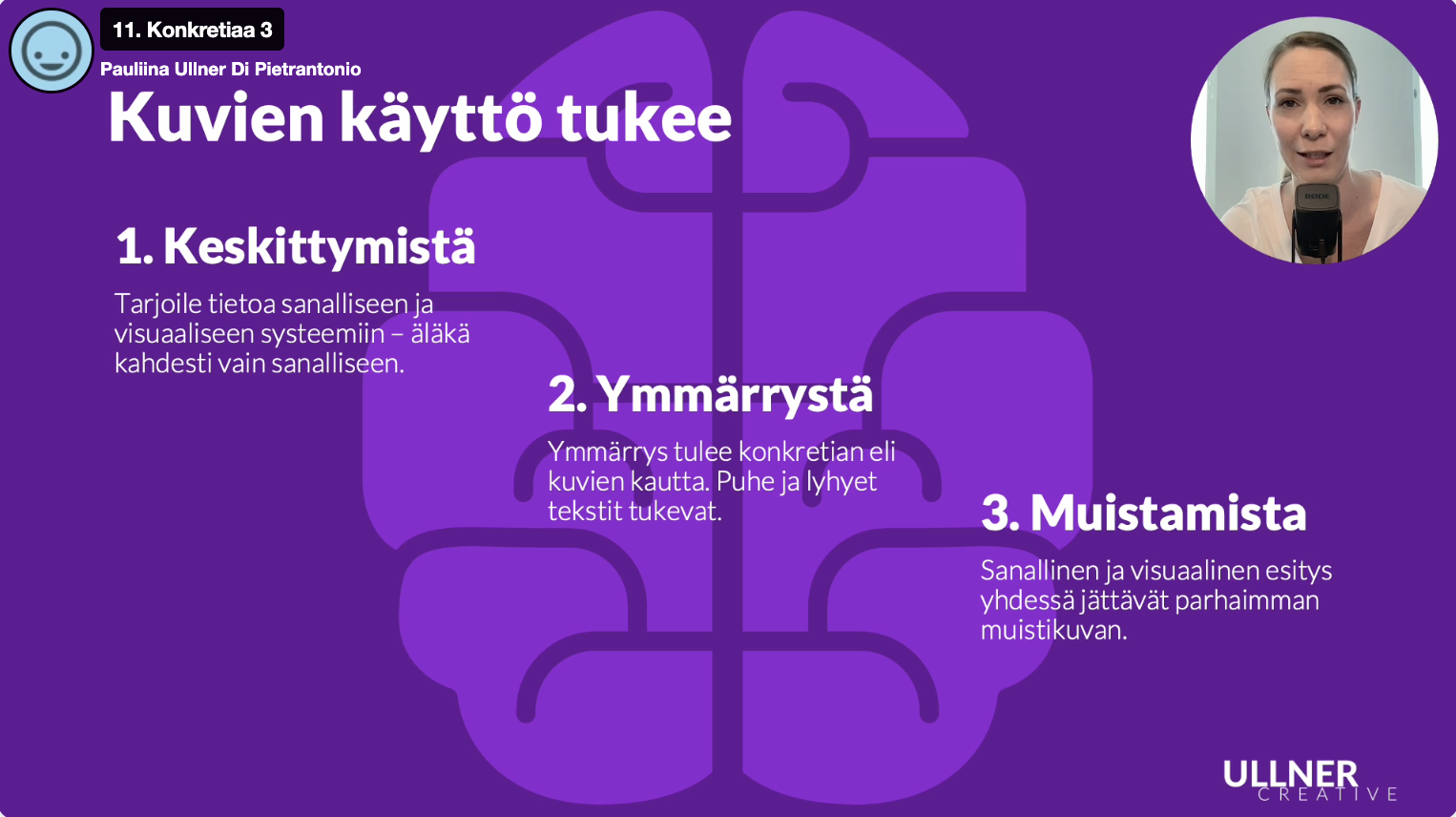 - Millä kaikilla tavoilla kuvat tukevat viestisi perillemenoa? (02:02)